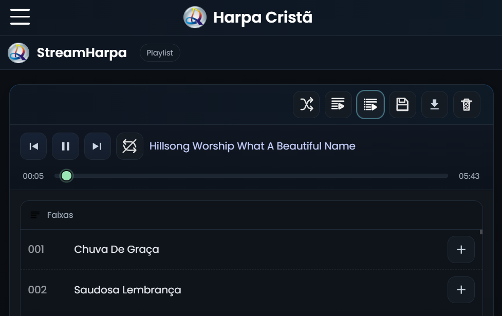 Aqui temos um player de músicas com foco na Harpa Cristã. O projeto traz um player online com todos os hinos da Harpa Cristã e outras canções evangélicas, permitindo ouvir diretamente no navegador, de forma prática e organizada. O sistema possibilita cadastro de usuário, criar playlists personalizadas, além de manter uma experiência acessível e intuitiva. Este projeto também está interligado com outros dois relacionados a letra de canções e Bíblia online. Link: StreamHarpa